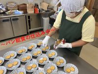 パン生地からこね上げるパンは利用者様やご家族様、また販売先のお客様からも大変ご好評を頂いております。自分たちが作ったパンを自分たちで販売するという機会にも恵まれ、月6回ほど、石巻イオン様、近隣小中学校様、福祉施設様へ訪問販売活動も行い、お客様とのやり取りを通してコミュニケーションを図る訓練などもしています。