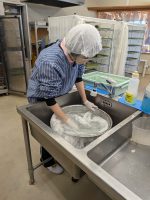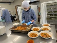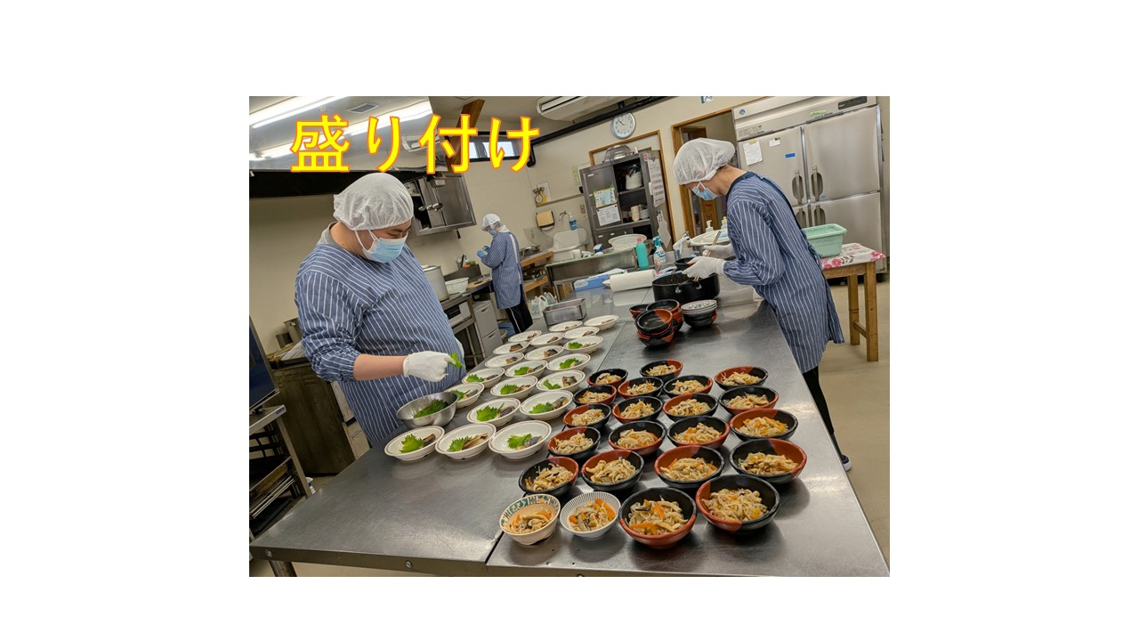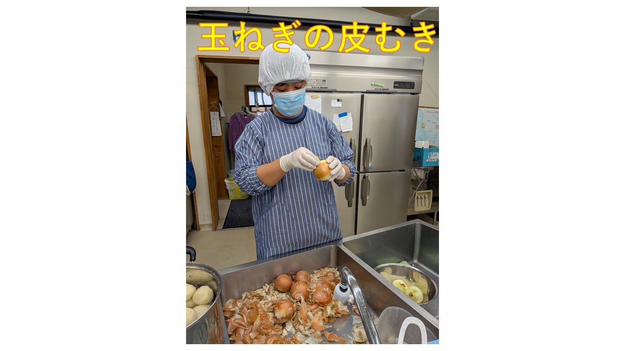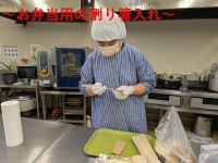 ラボラーレでは、利用者様と職員が協力しながら、昼食作り、外部販売用のお弁当作りを行っており、作業内容としては、お膳への食器準備、食器の枚数数え、食器の洗浄、厨房内の消毒、米とぎ、味噌汁づくり、料理の盛り付けなど衛生面に対する意識の向上も踏まえ、個々の利用者様の個別支援計画目標の達成に向けて、得意なことを活かし、苦手な事への挑戦にも取り組んでいます。