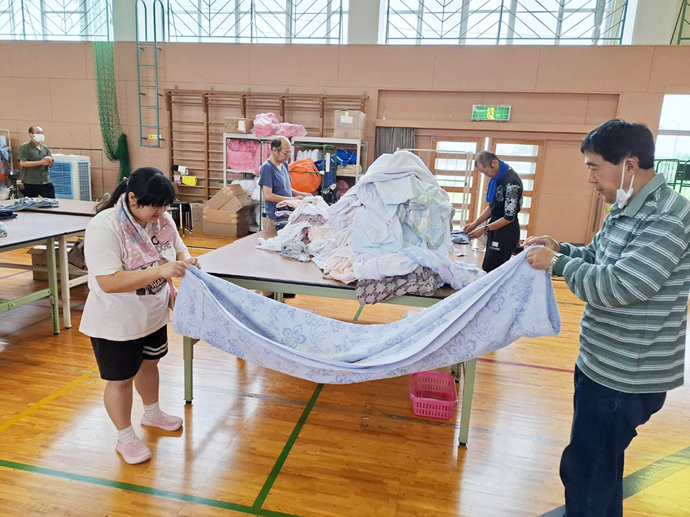 クリーニングされたリネン品(寝具.タオル.肌着等)を、キレイにたたみ仕上げする作業と体育館内の清掃作業を行なっております。