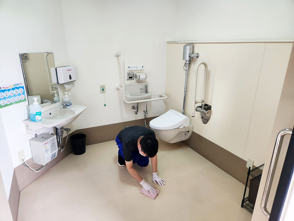 活動を通して生活リズムを整え、いろいろなことにチャレンジし、自分で出来る事を増やしていけるよう元気に活動をしています。施設の清潔を保つため、施設内清掃も担っています!